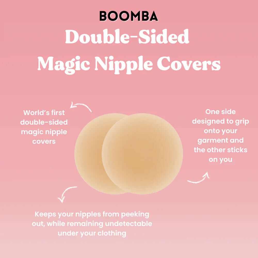 World’s first double-sided magic nipple covers, one side designed to grip onto your garment and the other sticks on you. Keeps clothing in place while remaining undetectable under your clothing.