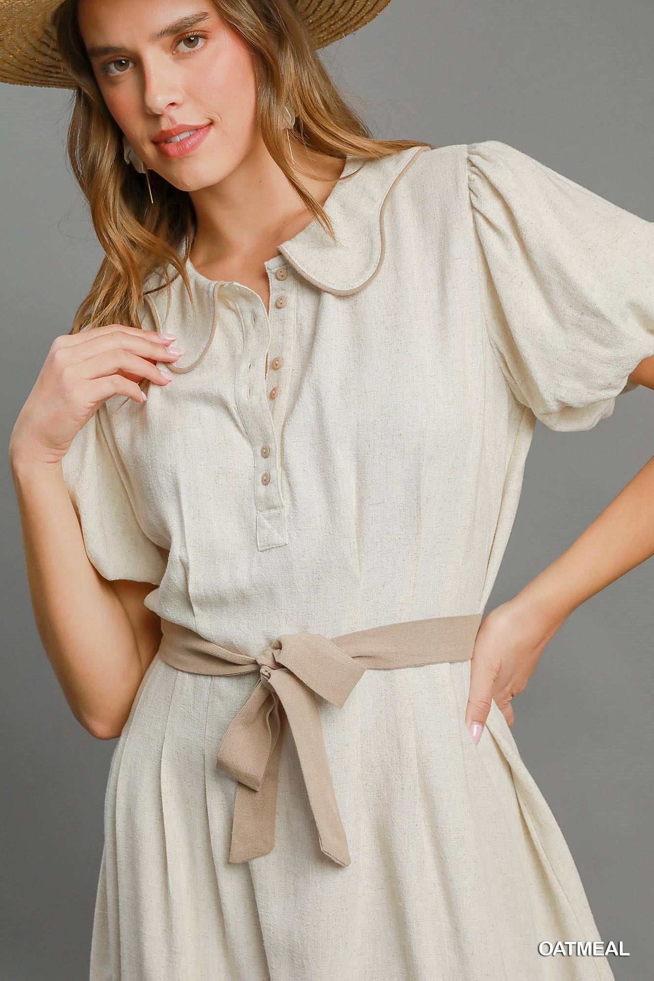 Hattie Linen Collard Button Up Tunic Top