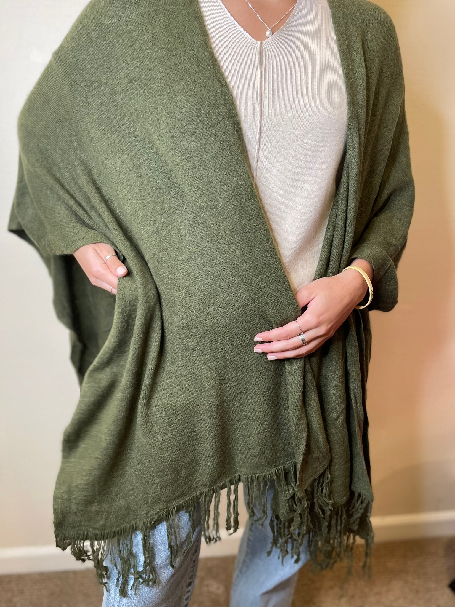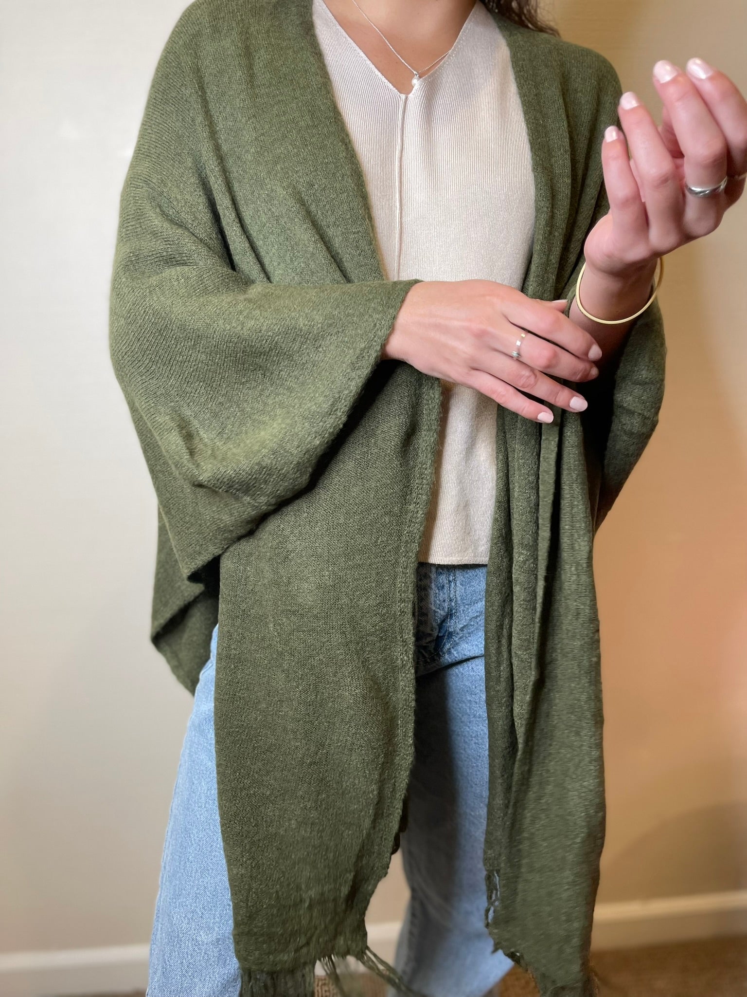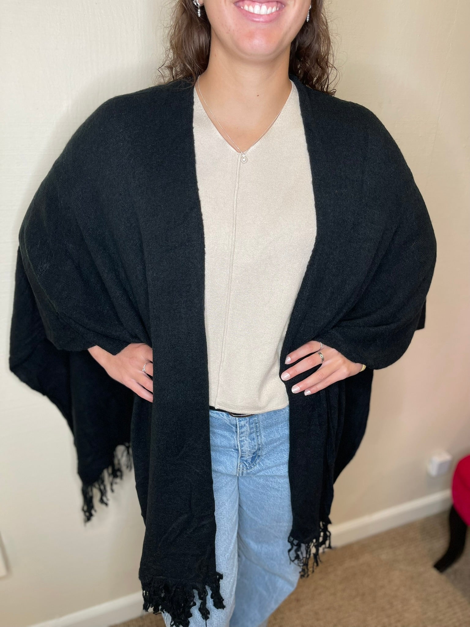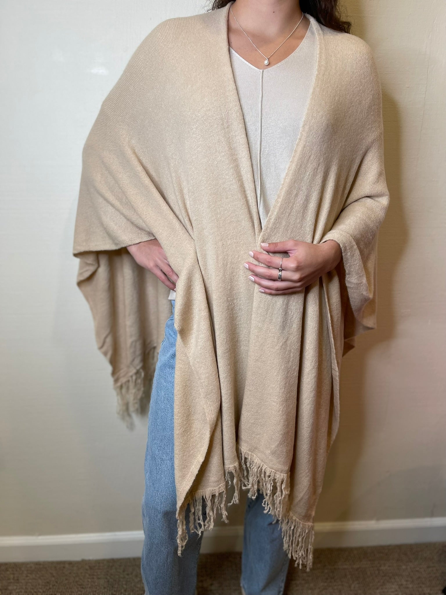 Riley Open Front Shawl with Fringe