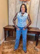 Ride into the summer breeze in style with the Midnight Rider Florez Denim Bleached Denim Vest! The raw edge hem and soft fabric provide ultimate comfort while making a bold statement while the back of the vest has this amazing aztec embroidery in tan and clay which adds even more pop. Get ready to turn heads at country music concerts, the midnight rider way!