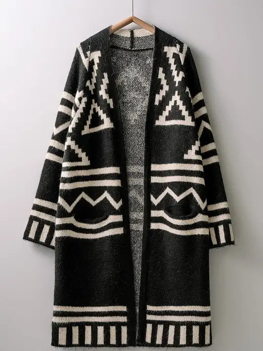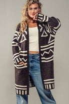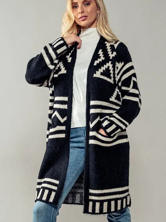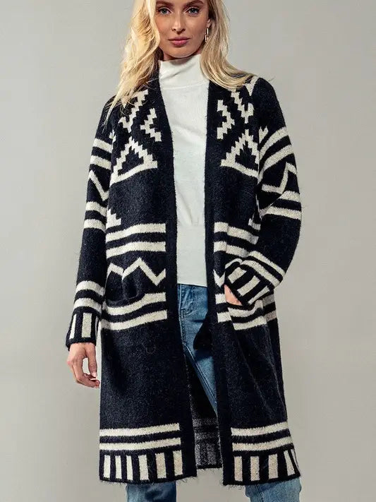Abilene Aztec Print Long Sleeve Open Cardigan