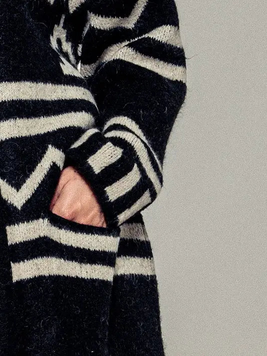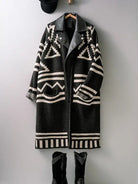 This cozy, one-size-fits-all Aztec print cardigan is made from 100% acrylic for a soft, warm feel. Its long, open-knit design makes it the perfect playful layer to brighten up chilly days.
