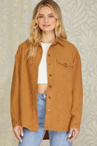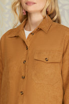 A stylish must-have for your fall wardrobe! This long sleeve button down is perfect for those slightly chilly nights at your favorite fall concerts. Whether you layer it or wear it on its own, you'll rock that effortlessly cool look. Plus, it has a front pocket for all your concert essentials (phone, tickets, and some snacks, of course).