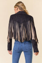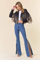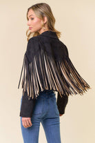 Black Multi Color Fringe Open Front Jacket