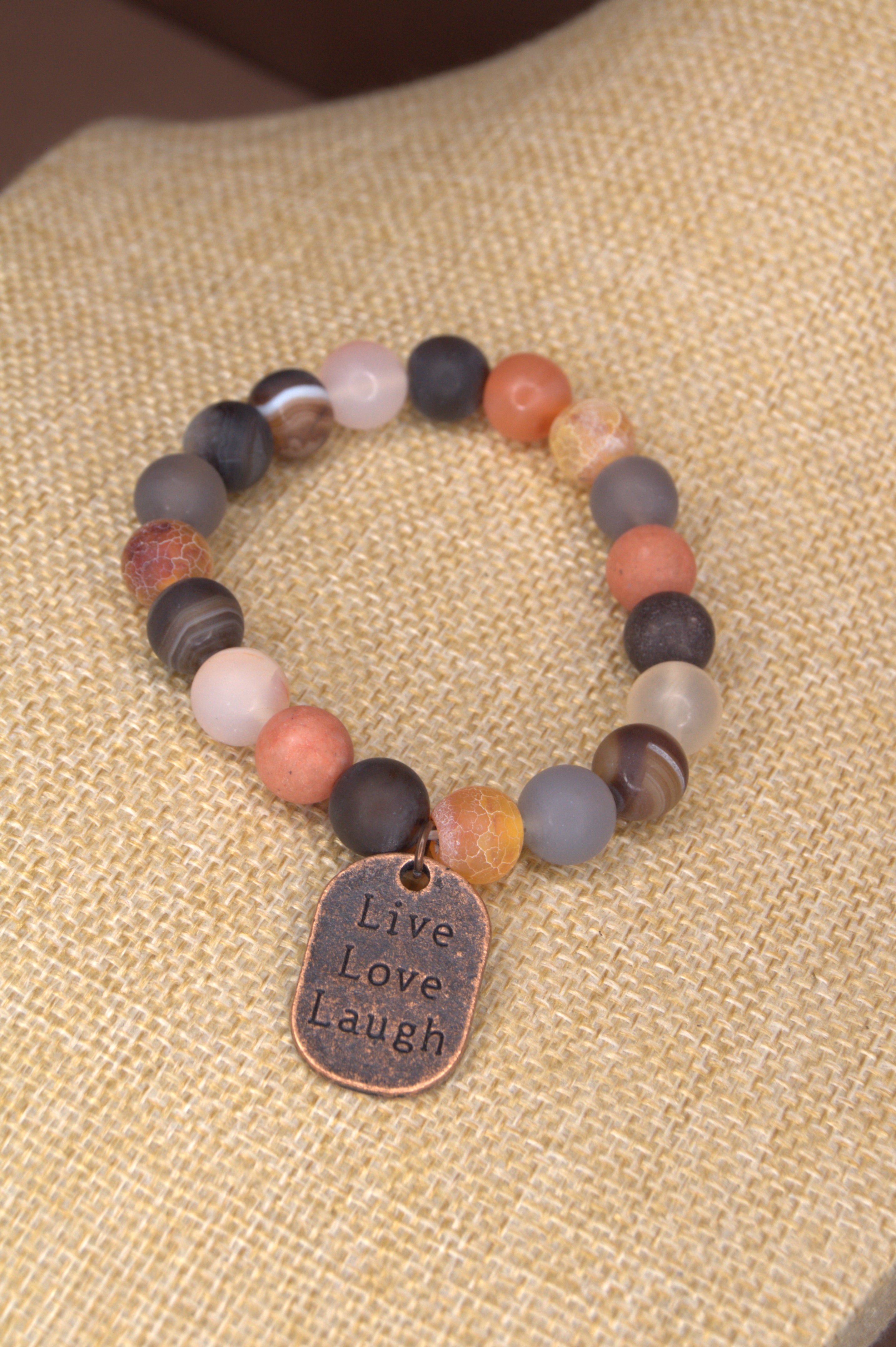C&L Live, Love, Laugh-10mm assorted Agate Bead Stretch Bracelet