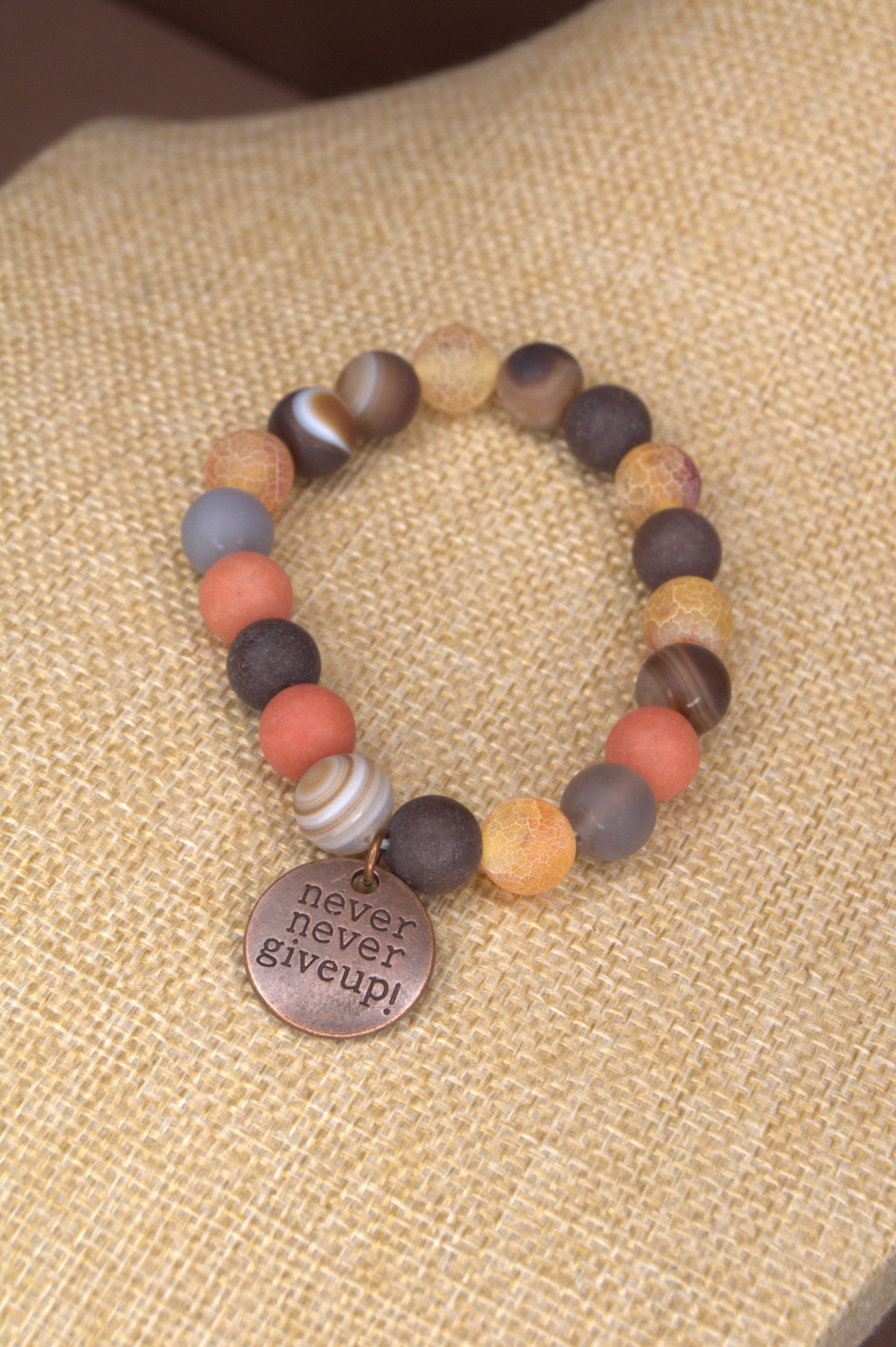 C&L Never, Never Give Up-10mm assorted Agate Bead Stretch Bracelet
