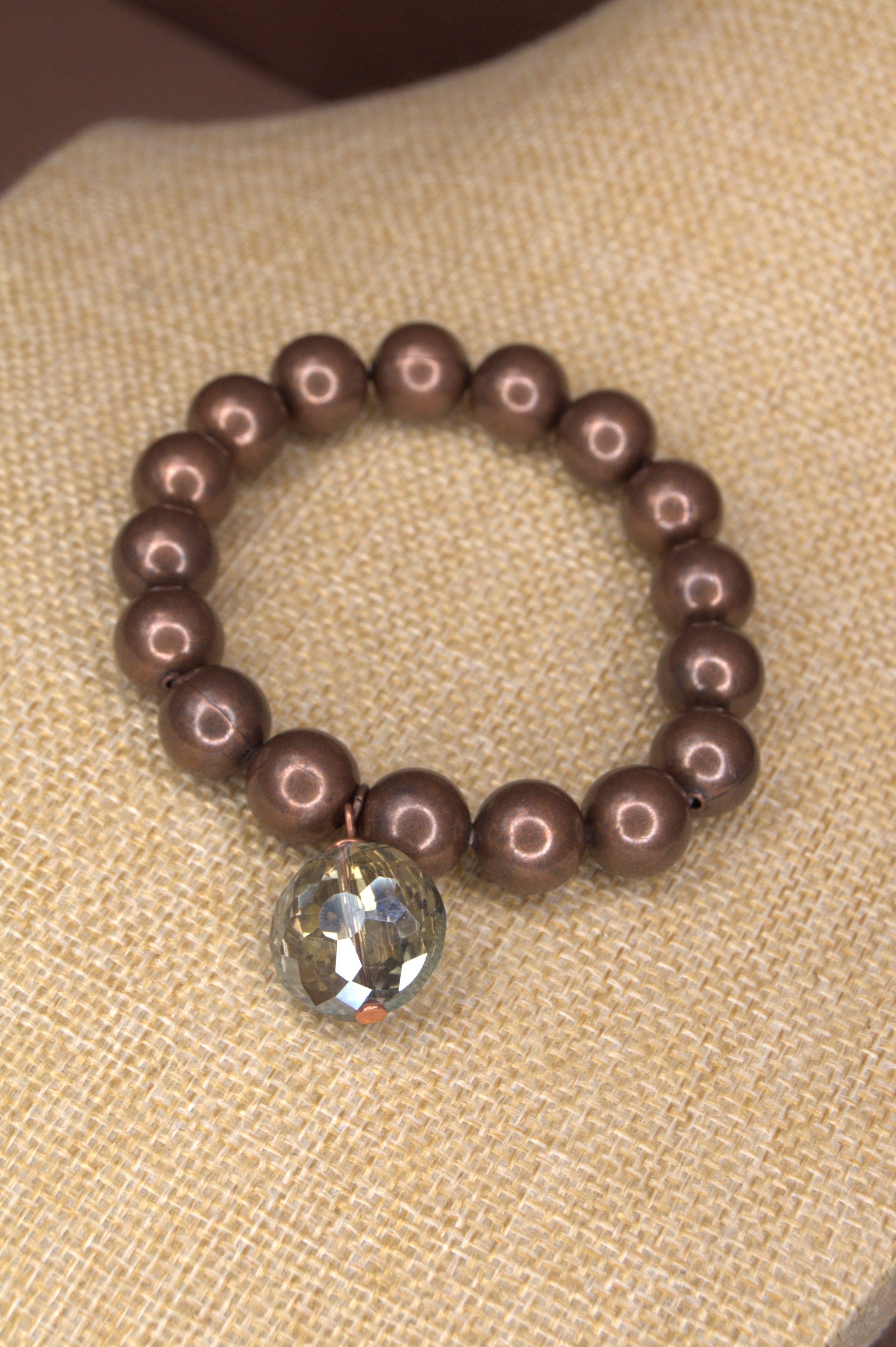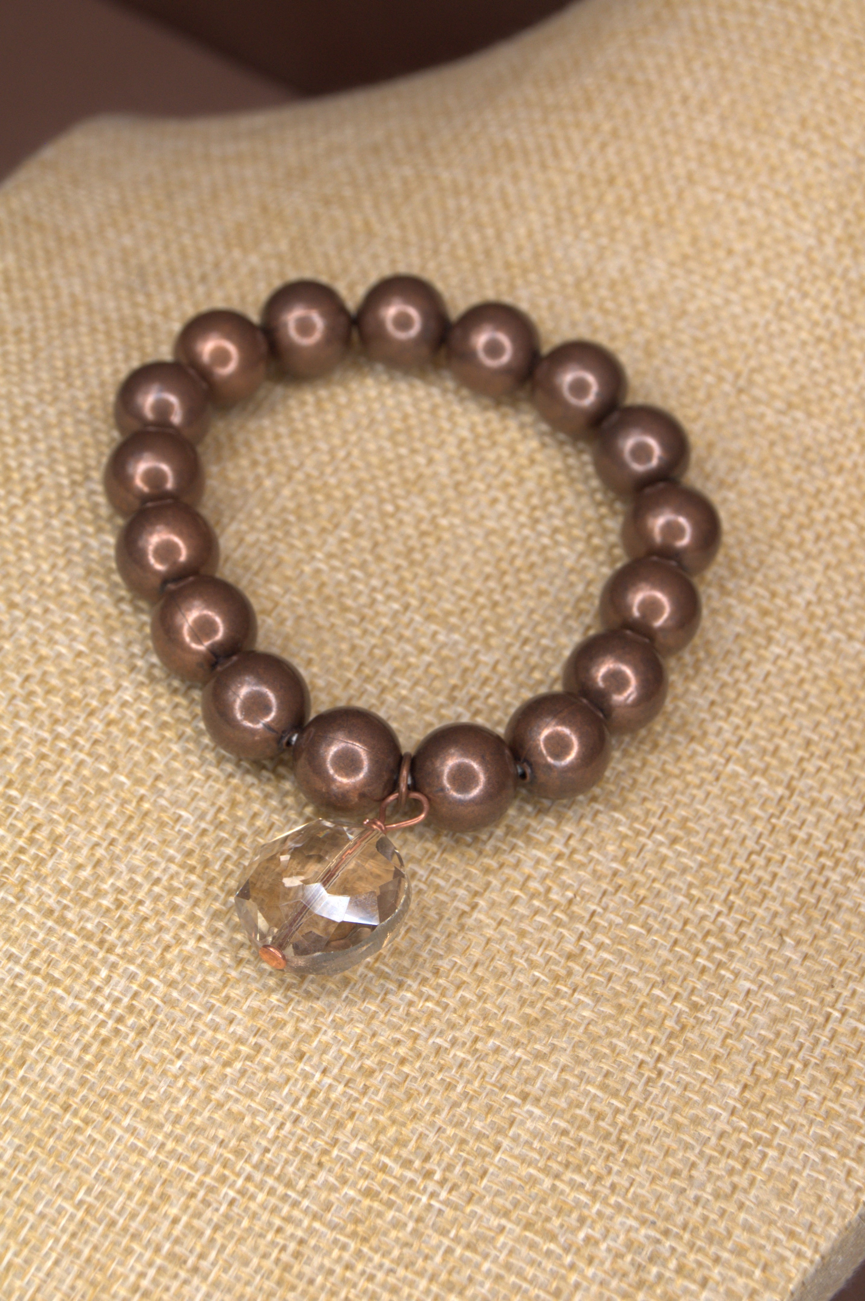 C&L Lg 12mm Copper Bead Bracelet w/Champagne Crystal Charm