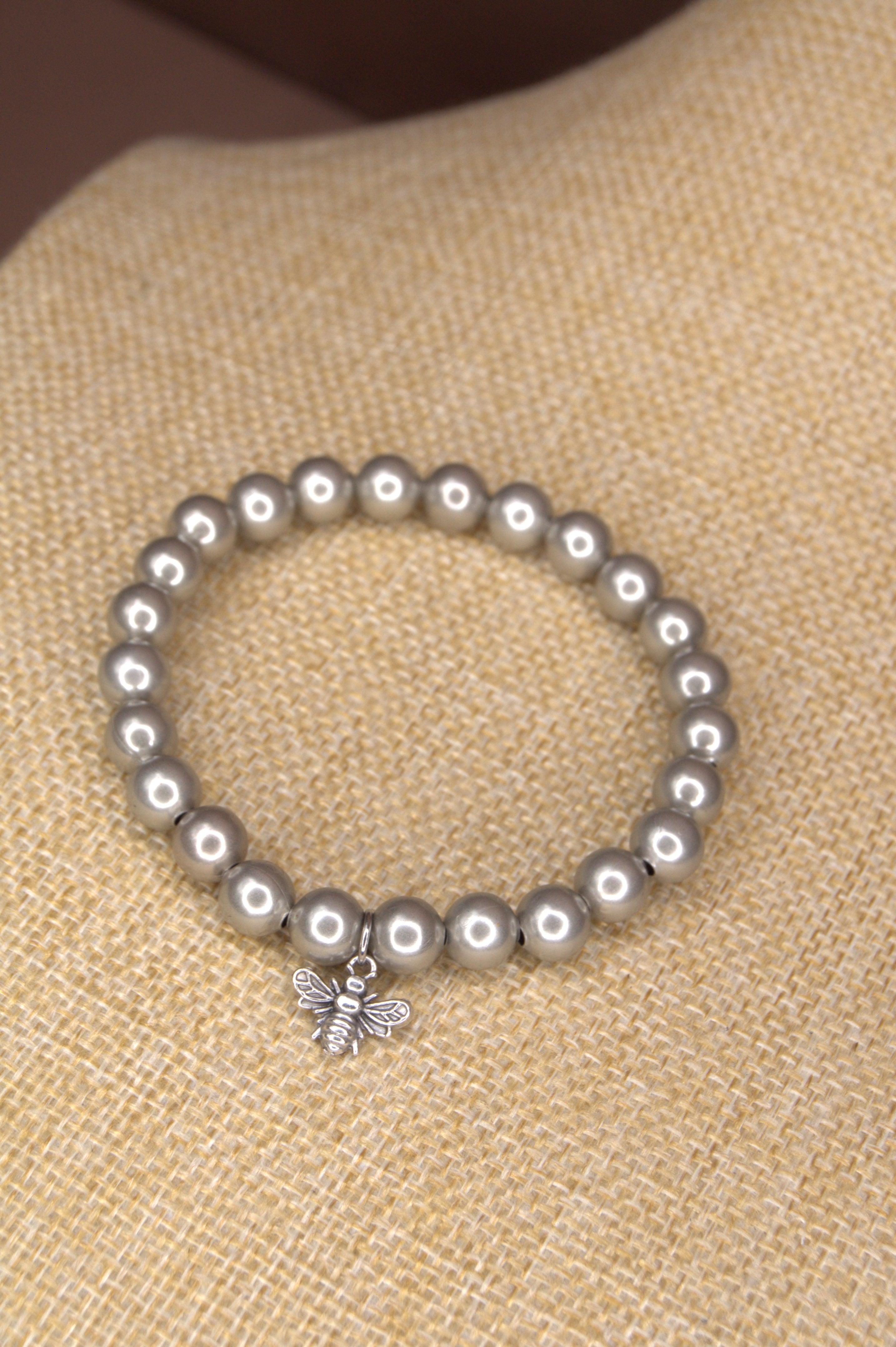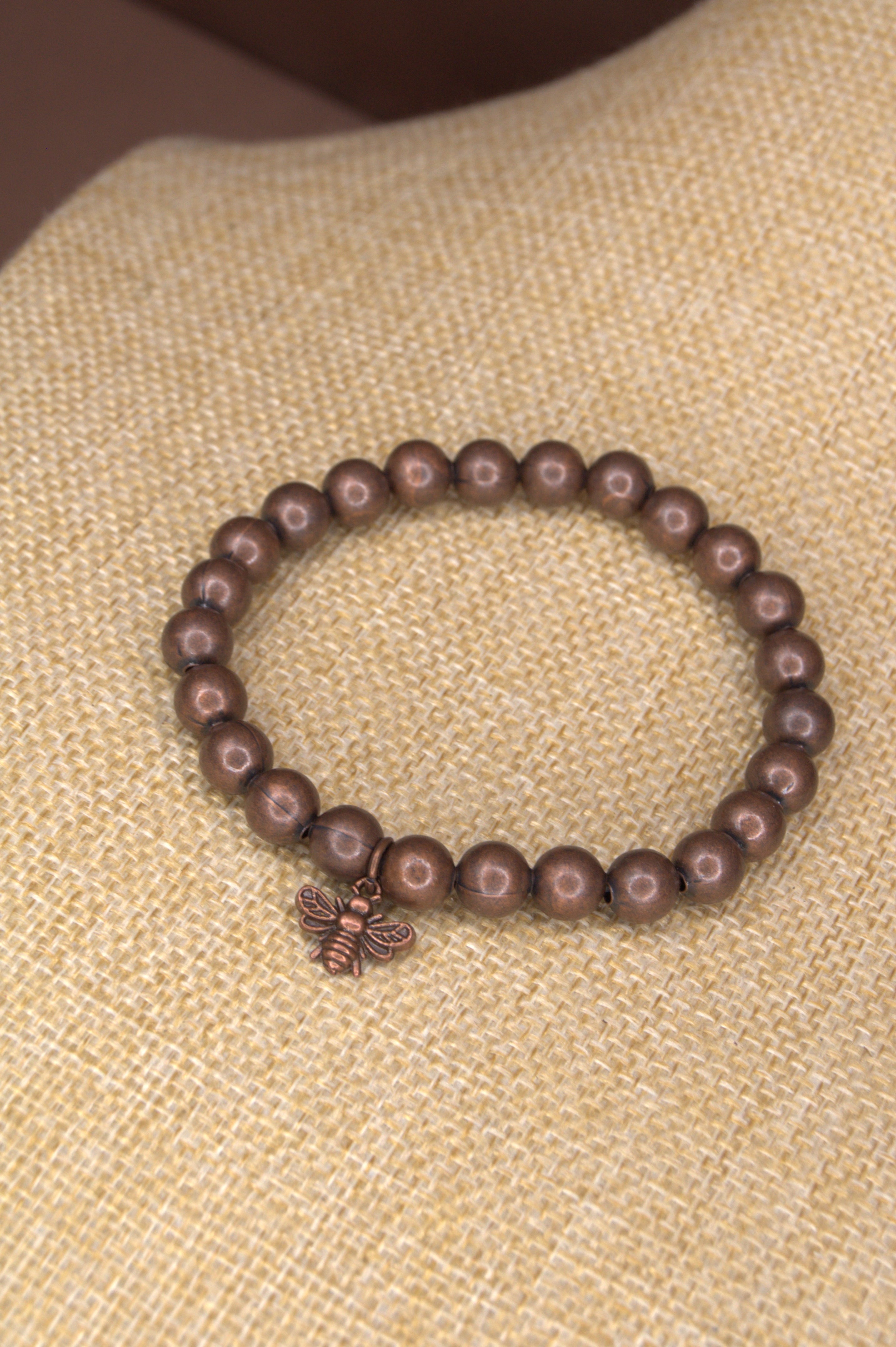 C&L Bees 8mm Metal Bead Stretch Bracelet