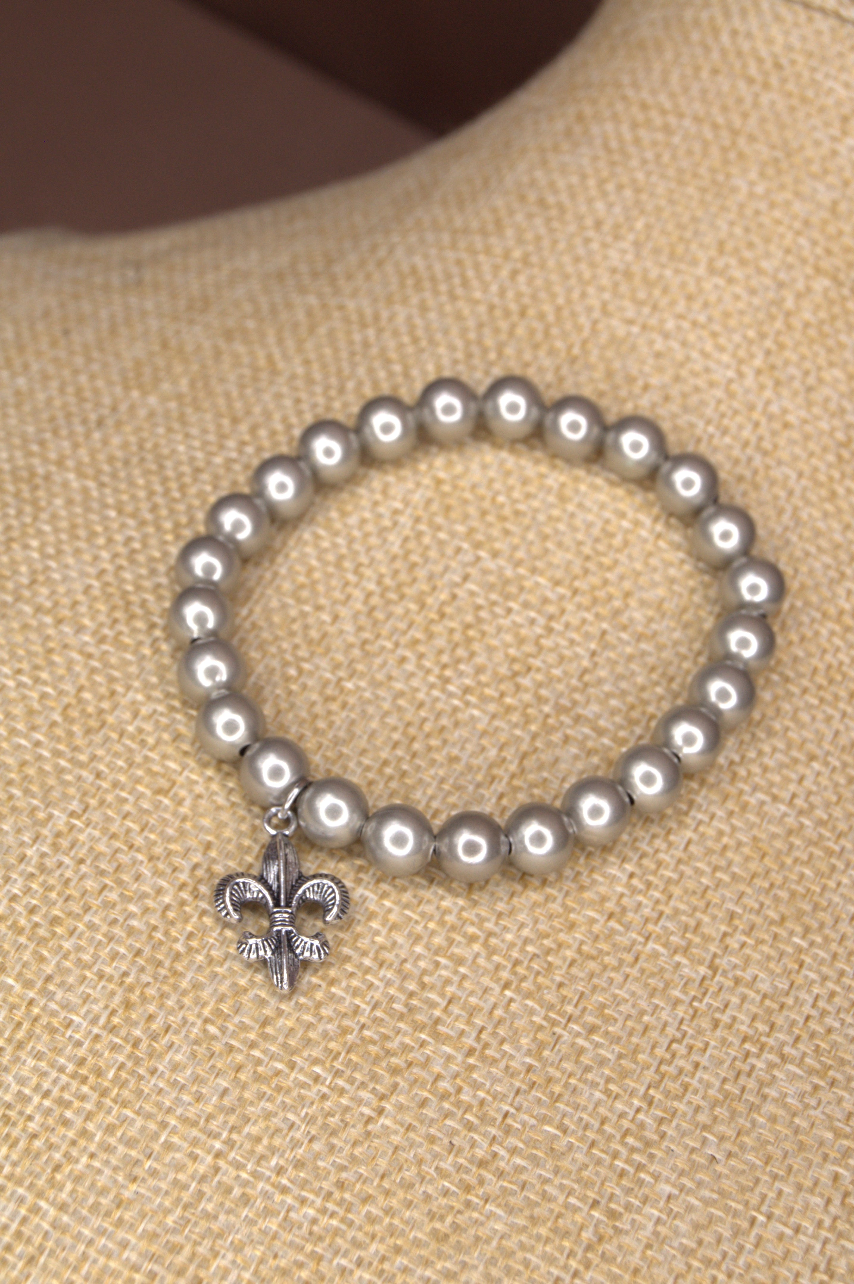 C&L Fleur de lis 8mm Metal Bead Stretch Bracelet
