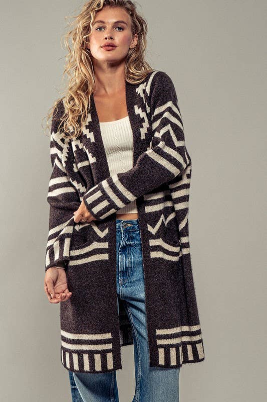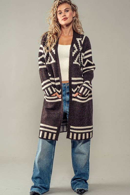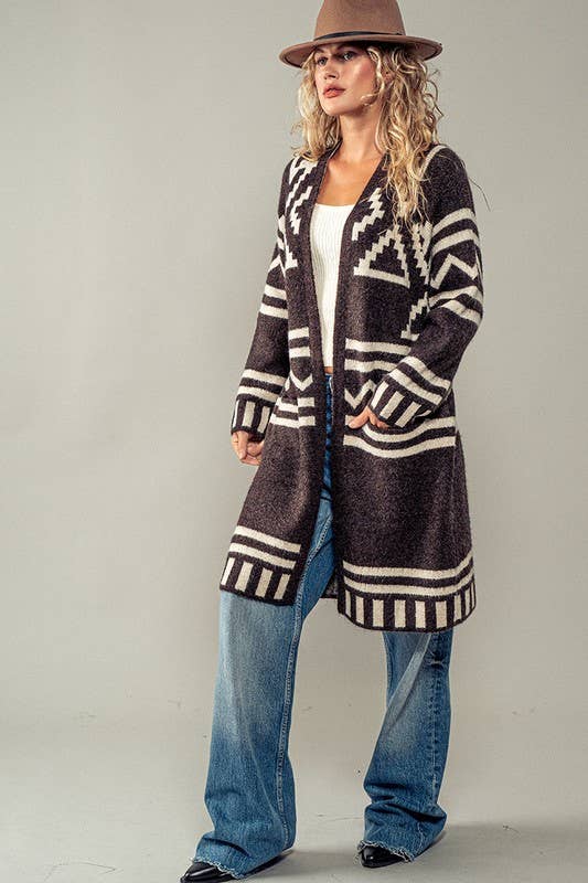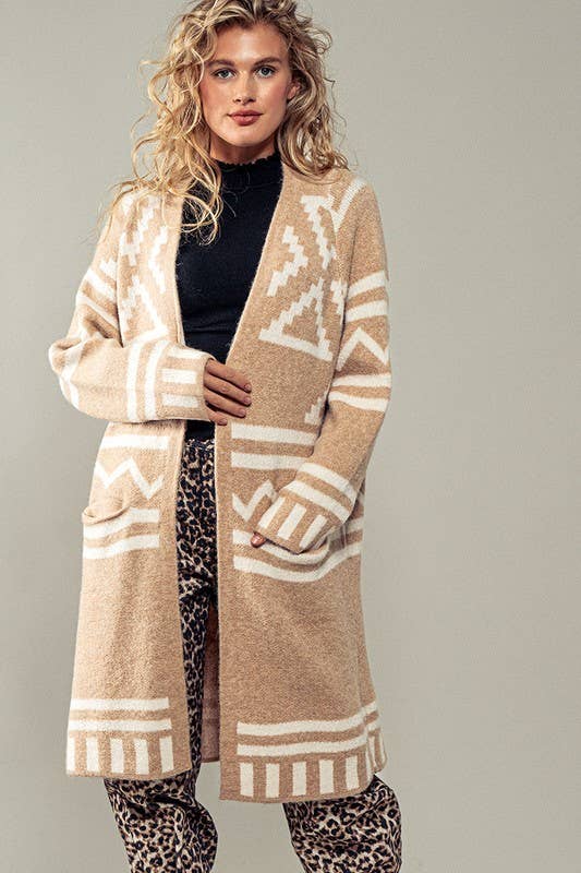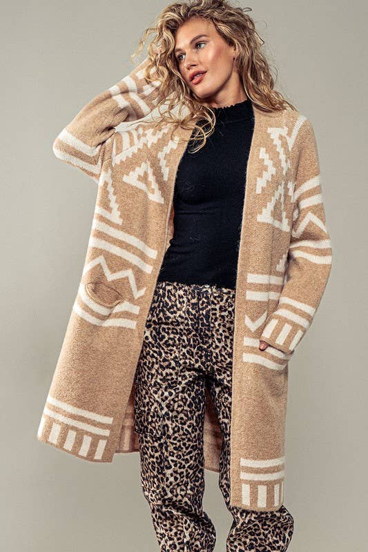 Abilene Aztec Print Long Sleeve Open Cardigan