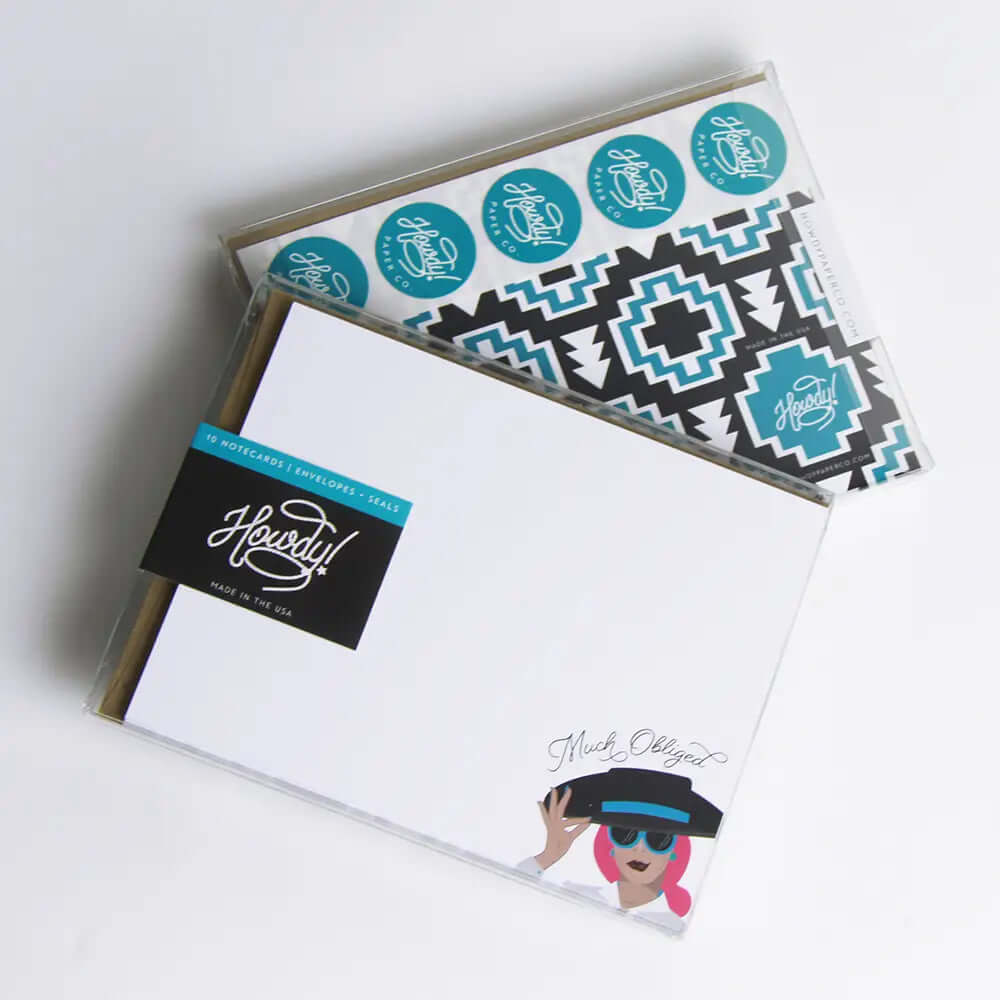 10 notecards, envelopes and envelope seals packaged in a box set.