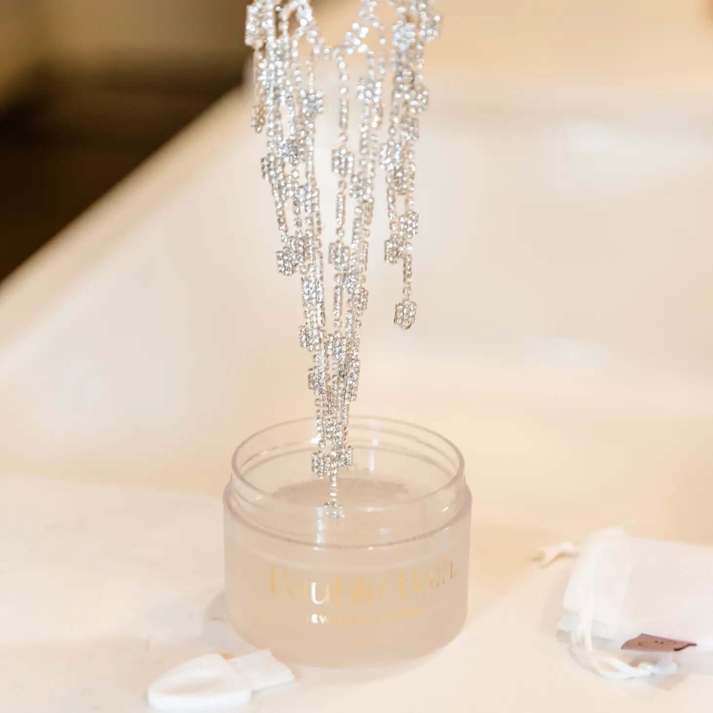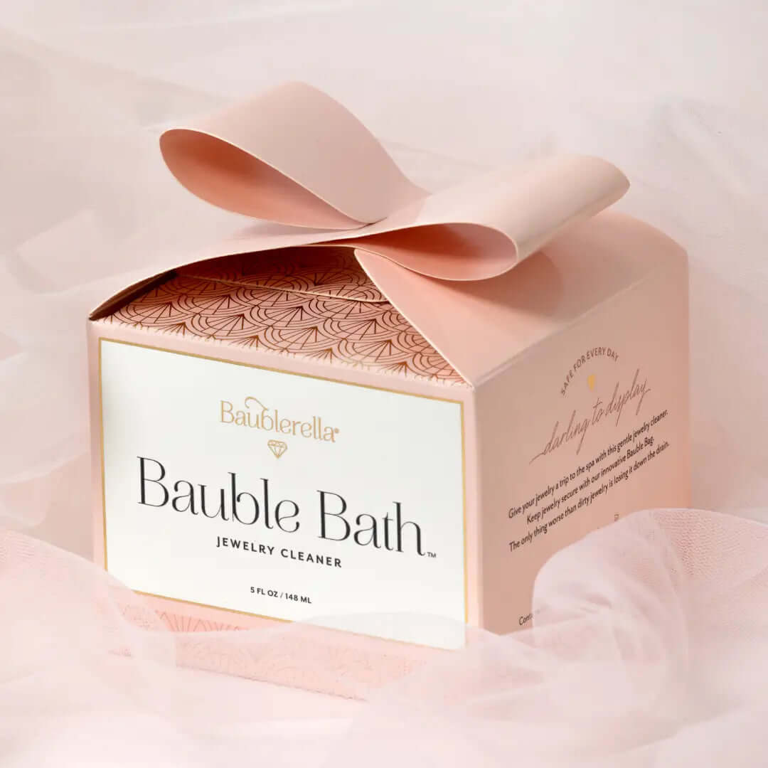 Give your jewelry a trip to the spa with this gentle jewelry cleaner. It's like self care for your sapphire! After a short soak, keep jewelry secure while rinsing with our innovative Bauble Bag. The only thing worse than dirty jewelry is losing it down the drain. Product Features Designed to be darling to display, and safe for every day. Innovative Bauble Bag keeps jewelry secure while rinsing. Formula is clean-crafted with non-toxic ingredients in the USA. Box with bow makes this jewelry cleaner a unique gift for jewelry lovers. Brush included to clean intricate details. Each box contains one jar of jewelry cleaner, a Bauble Bag and cleaning brush. This product is intended to clean jewelry stones. It will not remove tarnish from precious metals. If you are looking for something to clean sterling silver, gold or brass jewelry then you need our Glitzy Glove!