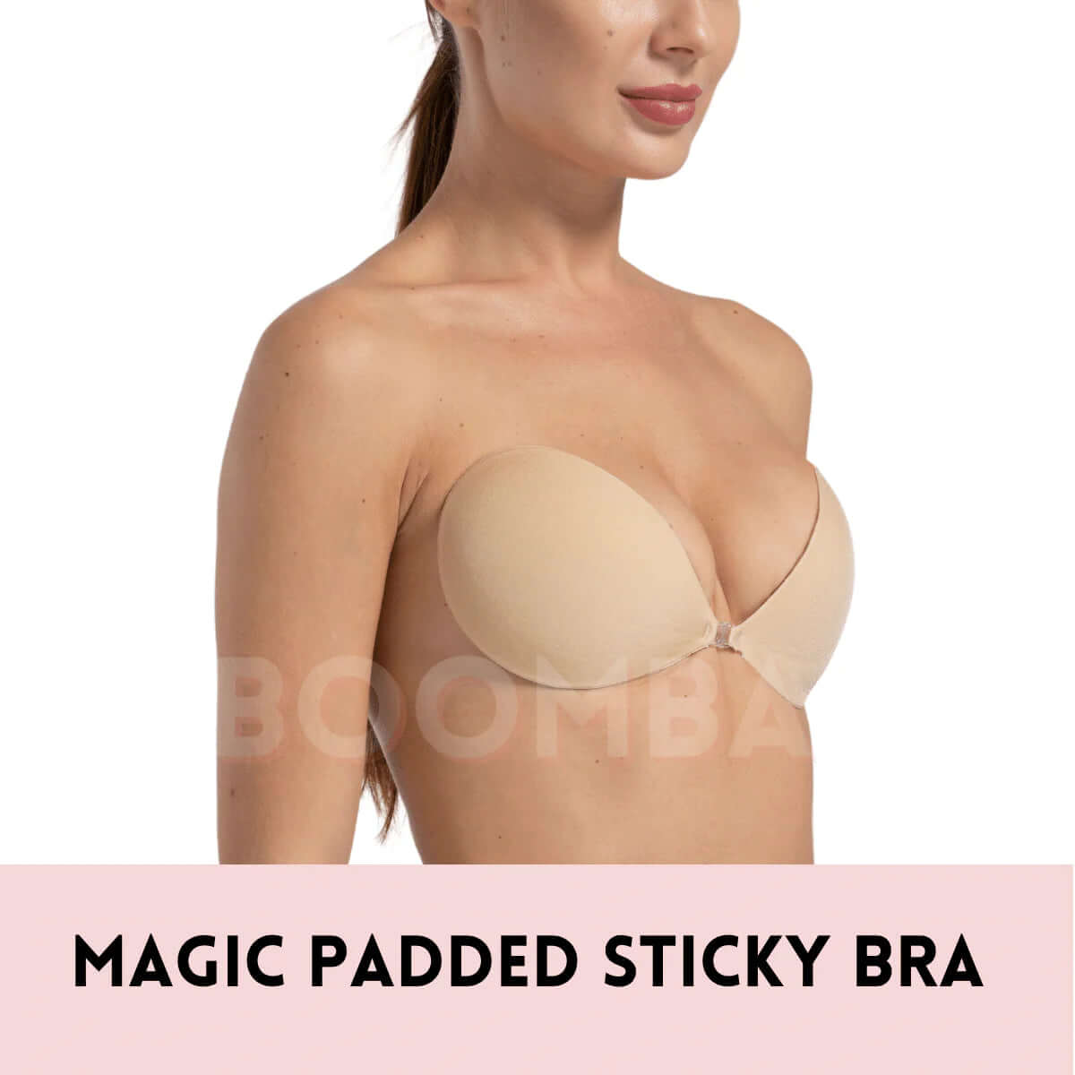 BOOMBA’s Magic Padded Sticky Bra is uniquely designed to add cup sizes discreetly.