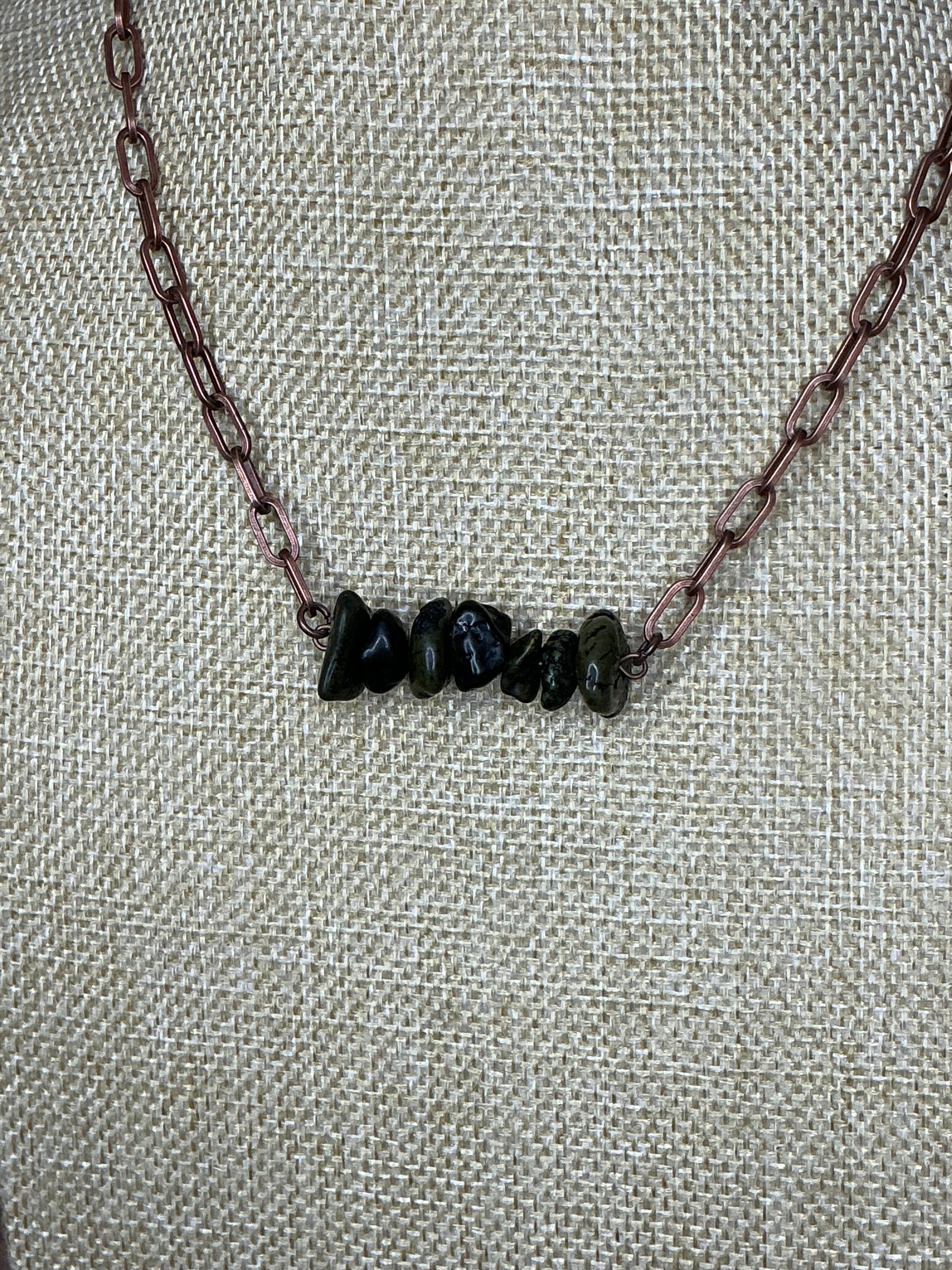 C&L Handcrafted Green Jade Chip Bar Necklace – Copper Paperclip Chain (16½") | Made in USA