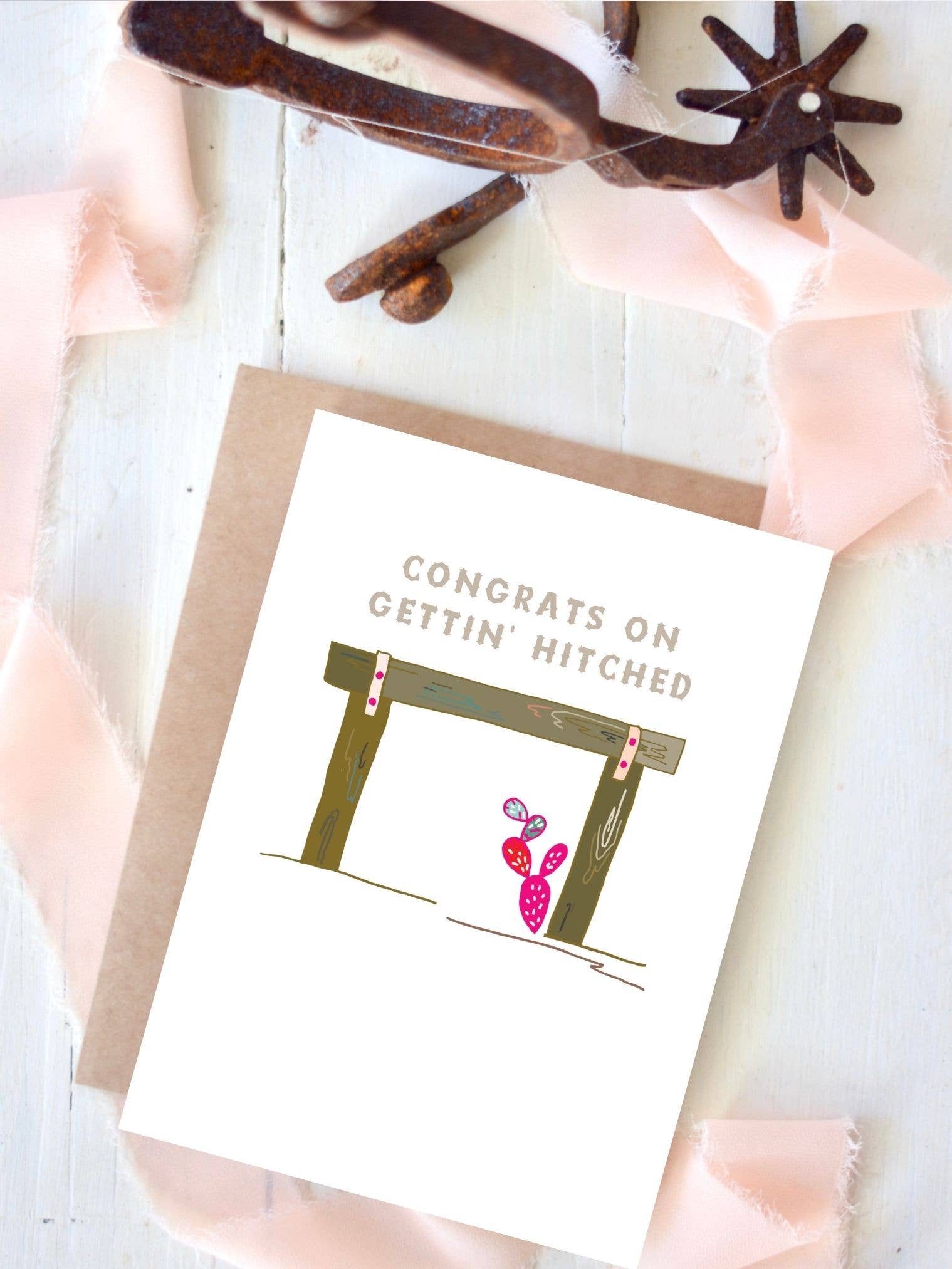 * Front of card reads: "Congrats on Gettin' Hitched"