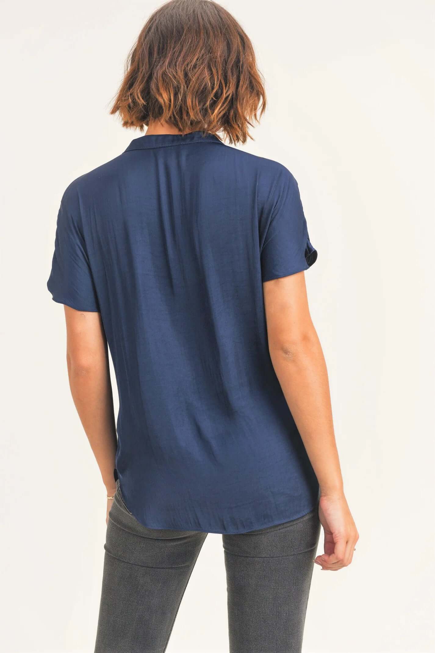 Elevate your wardrobe with the Esme Top. Designed with a V-neck and elegant ruched shoulders, this top exudes sophistication. The band collar adds a touch of chicness, while the rounded hem and silky fabric provide a luxurious feel. Perfect for any occasion, this top is a must-have for your collection.