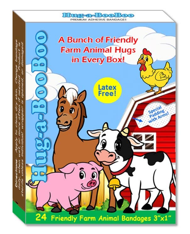 Every BooBoo Needs a Hug, so we created a bandage that gives one - and now our Amazing Hug-a-BooBoos feature Super Fun Friendly Farm Animals that HUG! The adorable Farm Animals on Hug-a-BooBoo Premium adhesive bandages all have outstretched arms, just waiting to give a comforting hug to any scrape or cut! No booboo - no problem! You can wear one anyway