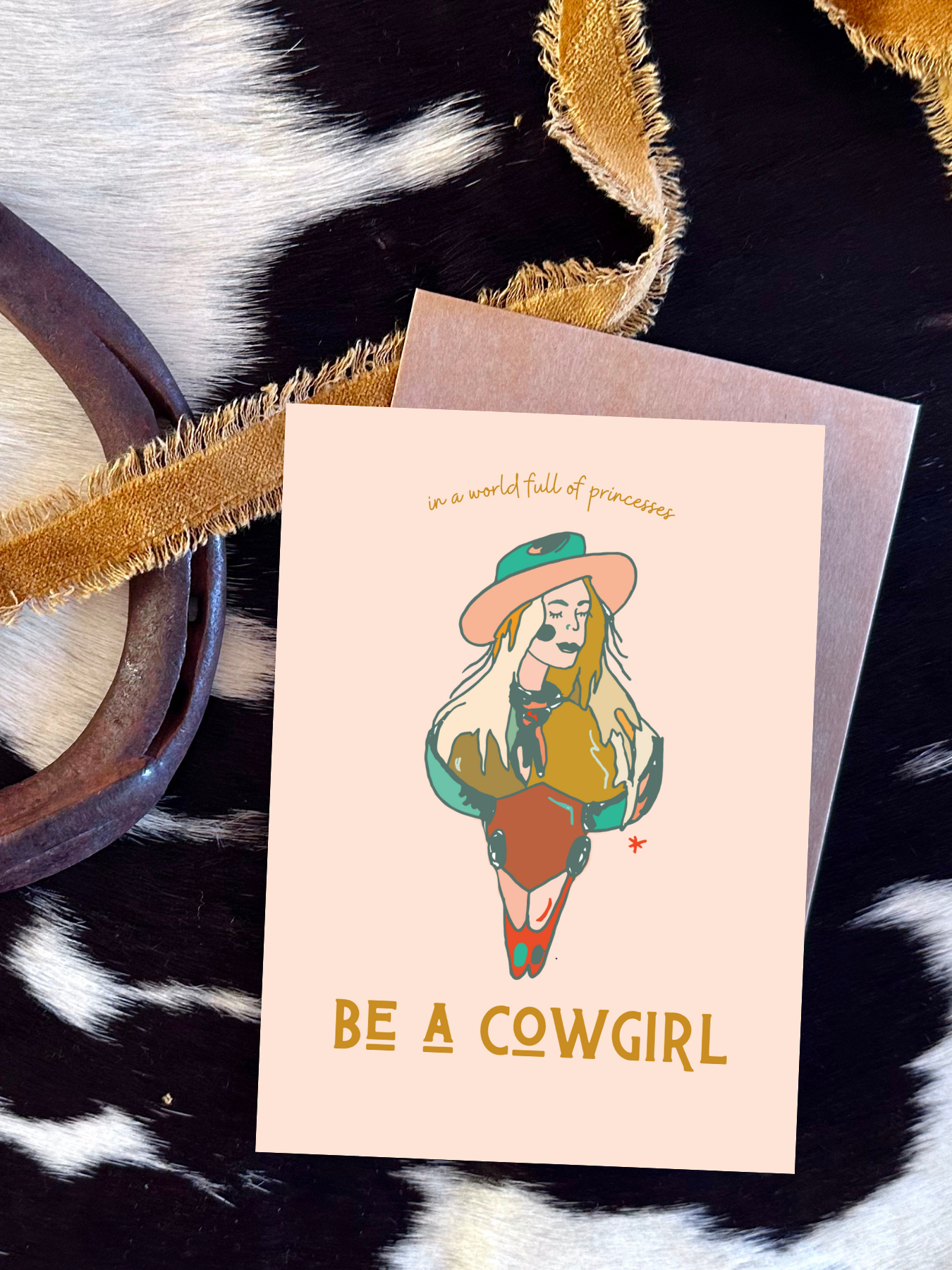 The front of the card reads: "In a world full of princesses, be a cowgirl"