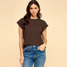 Meet Josie—easy, polished, and endlessly wearable. This rolled-sleeve crewneck pairs a clean silhouette with a relaxed fit for throw-on comfort. The breathable cotton-spandex knit drapes smoothly, layers like a dream, and elevates denim, skirts, and shorts from day to night. Available in Dark Brown and Sand for effortless mixing and matching.