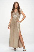 The Napa Nights Metallic Maxi Dress — a radiant showstopper that glimmers with every step. Made in the USA, this sleeveless metallic maxi dress features a flowing silhouette that flatters every curve while capturing the light for an unforgettable entrance.