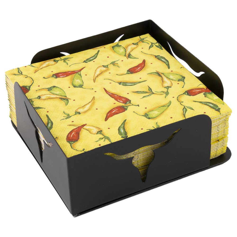 Paper Cocktail Napkin Metal Caddy Longhorn Black