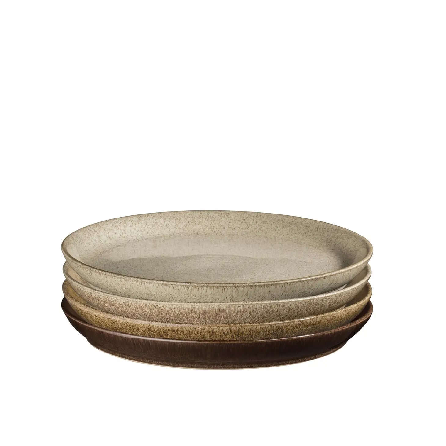 Studio Craft is the epitome of Denby's artisan and handcrafting skills with stunning textural glazes perfected over 200 years and reinvented for a modern audience. A great collection for mixing and matching with your existing tableware. Presented in four tonal glazes as a mix and match set, or single items to create your own collection, the contemporary Coupe Plates make food look beautiful. Perfect as a plate to use every day or a piece for serving, the coupe shape gives you depth and the taller sides make them ideal for dishes with more liquid. Set include: 4 Medium Plates A little more about the Studio Craft Medium Plate: • Made in England • Expertly glazed to enhance durability • Part of Denby's Studio Craft range, new to 2017 • Part of the Denby 10 Year Guarantee and Collectors promise • Oven, microwave, dishwasher and freezer safe • Material: Stoneware Dimensions Length: 21cm, Width: 21cm, Depth: 2.5cm Length: 8.25in, Width: 8.25in, Depth: 1in