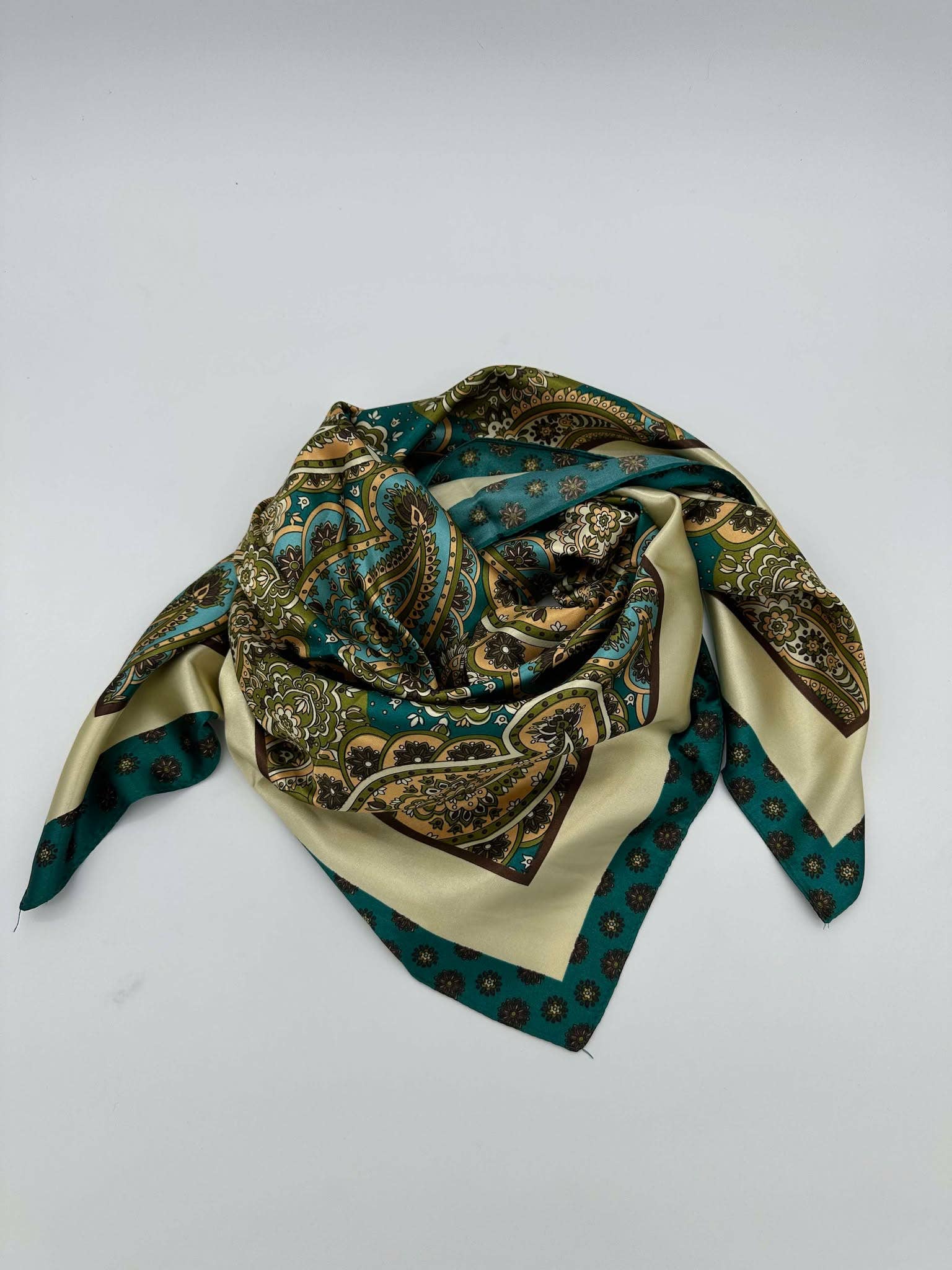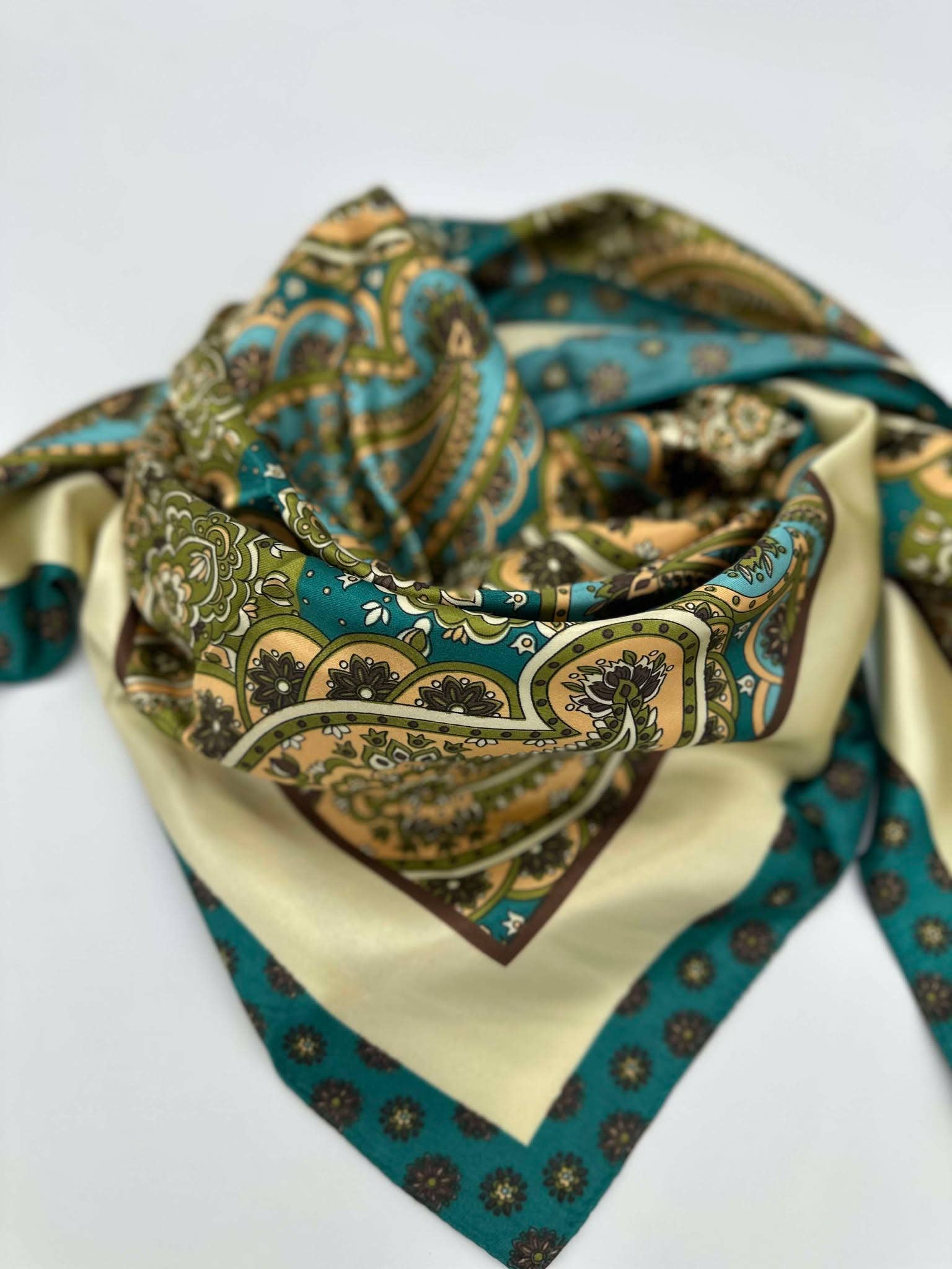 Wrap yourself in luxury with our Beige Paisley & Black Border wild rag! Made from 100% Poly Satin, this 36x36 scarf is soft and versatile. The classic paisley pattern and bold black border add a touch of elegance to any outfit. Elevate your style and comfort with this must-have accessory!