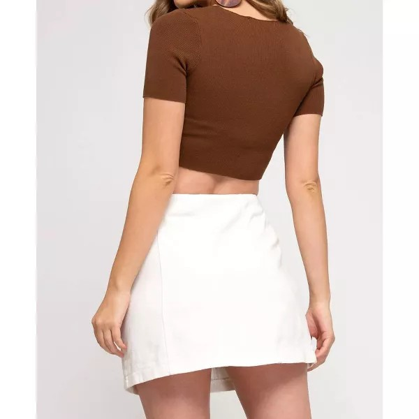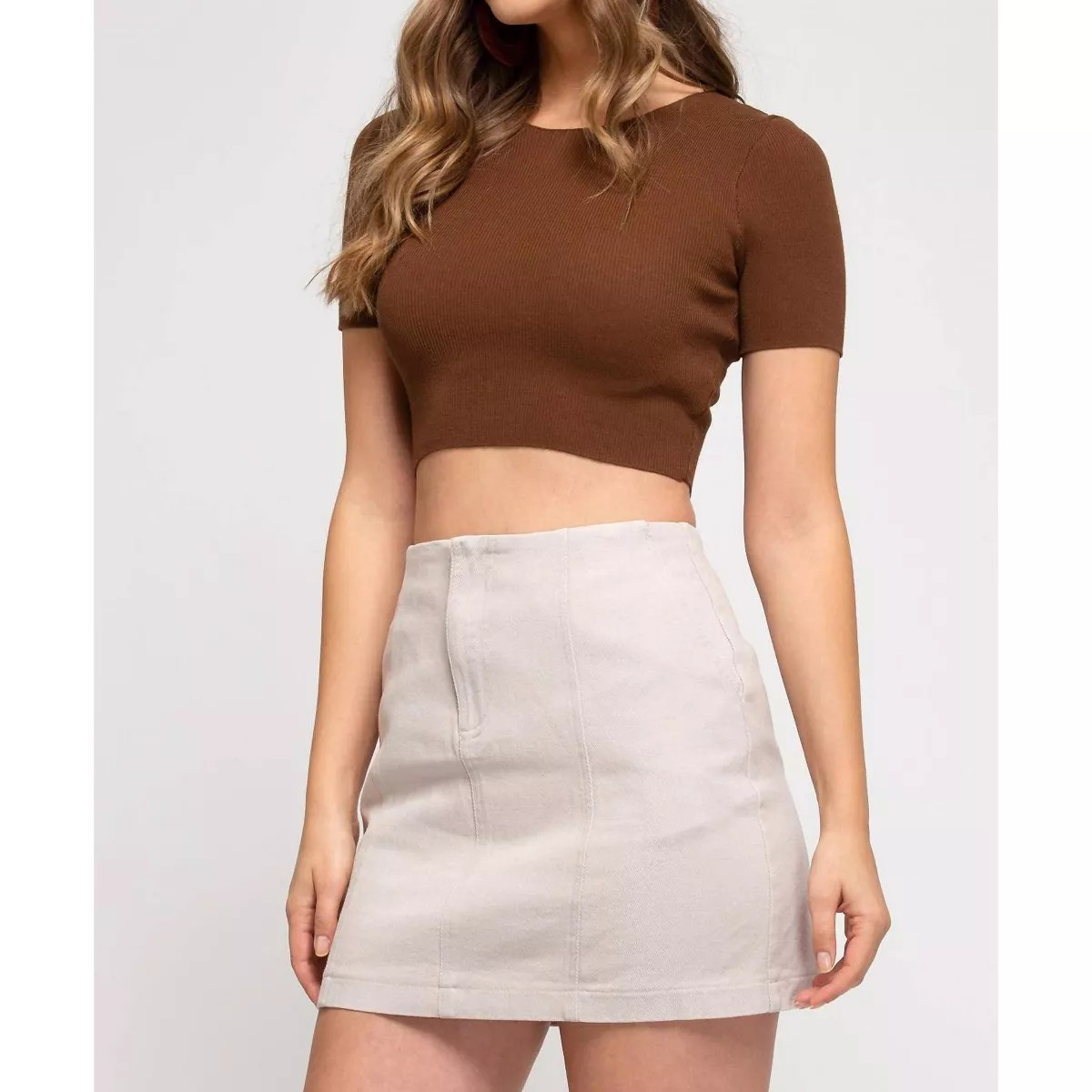 Woven Twill Washed Mini Skirt w/Pockets in Stone